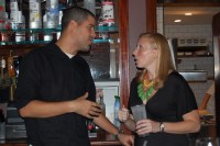 As the bar started to fill up Aldo armed me with a large bottle opener which I dutifully put in my back pocket as instructed by my Jager Bomb yoda then I got to work. As the eyes of waiting customers met mine from across the bar I felt a wave of anxiety. In my other adventures I never had to perform so directly and immediately. But there I was, standing before these thirsty folks shaking in my boots (actually I was wearing Tory Burch Reva flats, I thought they would be most comfortable for a night spent on my feet). Some rattled off their orders of up to five drinks so fast I couldn’t catch them all. I will admit I pretended to be hard of hearing a few times; I needed the repetition in order to quickly memorize complete orders.