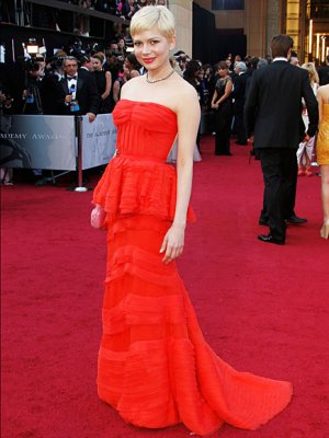 | Best Dressed: Michelle Williams in Louis Vitton. I wish I cold pull off a pixie like her! Credit: Kevin Mazur/Wireimage |