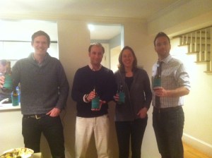 As people filtered in I served the beer in a custom-made koozie with the url for this blog on it (I claimed it was grassroots marketing,which it was of course, but in addition, I couldn’t figure out how to make labels for the bottles). When the first guest said they really liked the beer, I thought they were being polite. As more people tried it, however, I saw the look of shock on their faces as they told me how great my beer was. It was at that point that I really started to believe that they actually liked it! I felt like Sally Field at the Oscars! I could not believe that it was actually good! This tasty outcome may make me reconsider brewing again, despite the slow pace of the process.