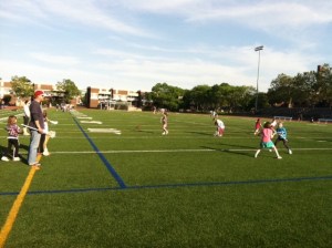 Eric Taylor makes me want to be a coach. Football season is over, so I had to find an alternative, so I settled for lacrosse! I played lacrosse for seven years (middle school, high school and one year of club lacrosse in college), and while I anticipated many things about the sport may have changed since the last time I picked up my stick –first a foremost being the stick itself – I was confident that I had something to offer lacrosse stars of the future. And by future I mean 2023 specifically. That’s right, I volunteered to help a small cadre of dedicated individuals who coach lacrosse to 5-year-old girls in Charlestown. I was aptly wearing my Panthers T-shirt.