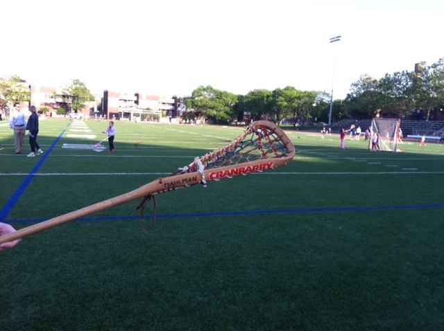 I was the new coach, so I understood that the girls may be a little wary of me at first, but it took me no time at all to realize that they were not looking at me with trepidation, they were looking at my stick. Yes, the lacrosse stick I was using – and I have used since middle school — is not made of the light-weight, colorful plastic like the sticks all these little ones use. It is made of wood (see below). I had to explain to them that this was a “vintage” stick and everyone played with wooden sticks in the late 90’s. “The late 90’s?” the girls cooed with wonder as if I was talking about the Depression or some other far-off time.