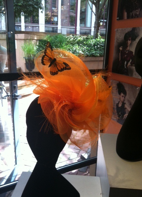 Boston’s only trained milliner (I tried to find another and was unable, which is why I have deemed her the “only,” speak up if I’m incorrect) has been the beneficiary of this spike in fascination with fascinators. Irish-born Marie Galvin of Galvin-ized Headwear has been making hats in Boston since 1998, and has been in her current location in the city’s South End since 2007. She started out in fashion design (her grandmother was also a designer), but was struck by the power of a hat.