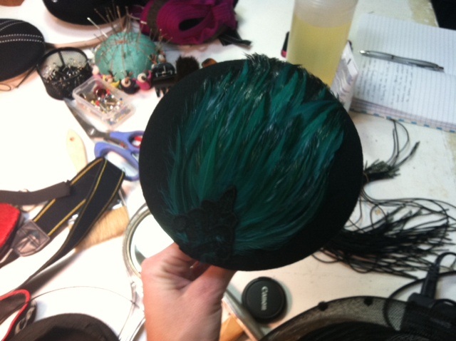 The hallmark of Marie’s pieces is the attention to detail, one look inside her shop and that is clear. For the beret we were working on Marie showed me how she hand-stitches beautiful jewel tone feathers to the top. This beret is perfect for fall and a perfect way to wade into the waters of fashion headwear. The beret fastens around your head with a thin piece of elastic that disappears into your hair, even my ginger locks. I was so happy to learn that this is how Kate’s hats stay so perfectly in place.