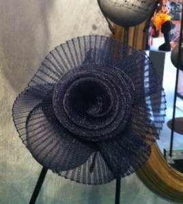 The process of making a hat – even a relatively simple one like the beret – is complex and takes a great deal of time. And Marie does all this after she has designed the hat…in her head she says. The real testaments to her talent are the fascinators on display in her shop. I am dying to get one, specifically the navy one at the bottom of this post. I just need the right party or wedding to which to wear it. Hint, hint my friends. Millinery is a lost art, as is, perhaps , the wearing of these elegant accessories.