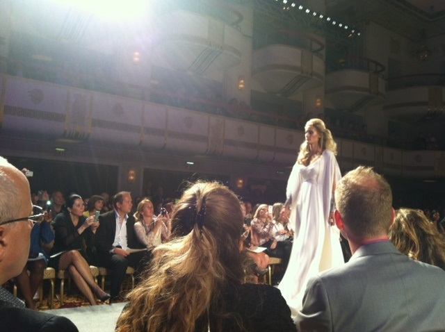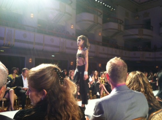 With the show featuring couture, I expected the type of hyper-stylized and eclectic looks that we saw come down the runway. What I did not expect were the eclectic outfits of our fellow audience members. The ratio of fashionista to fashion victim was slanted in the wrong direction. I even spotted a banana clip with bejeweled interlocking “Cs.” Neither Coco Chanel nor Karl Lagerfeld OK’d that! Judging from the crowd you would think we had walked into an episode of “The Real Housewives of New Jersey.” It was a people-watcher’s dream.