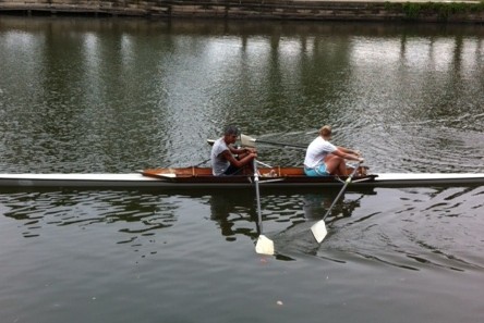 There were a lot of things that I had to remember to do at the same time and some strokes were better than others. When I was not doing something quite right Lev was not shy about telling me. There was, however, a slight language barrier. Yes, Lev is from Russia, but his English was not the problem. He was using rowing terminology that I was not familiar with, and when I did not response appropriately to his corrections, he would just yell them louder, which did not help my understanding of the situation. Because he was sitting directly behind me in the scull, his frantic gesticulations that were meant to help me understand him, went completely unnoticed. What I did notice was the ever-increasing frustration – maybe it was desperation – in his voice. And I was getting frustrated and desperate as well. Lev kept telling me to relax my shoulders which I was clenching up near my ears out of stress. How could I relax with this tiny Russian hollering in my ear?