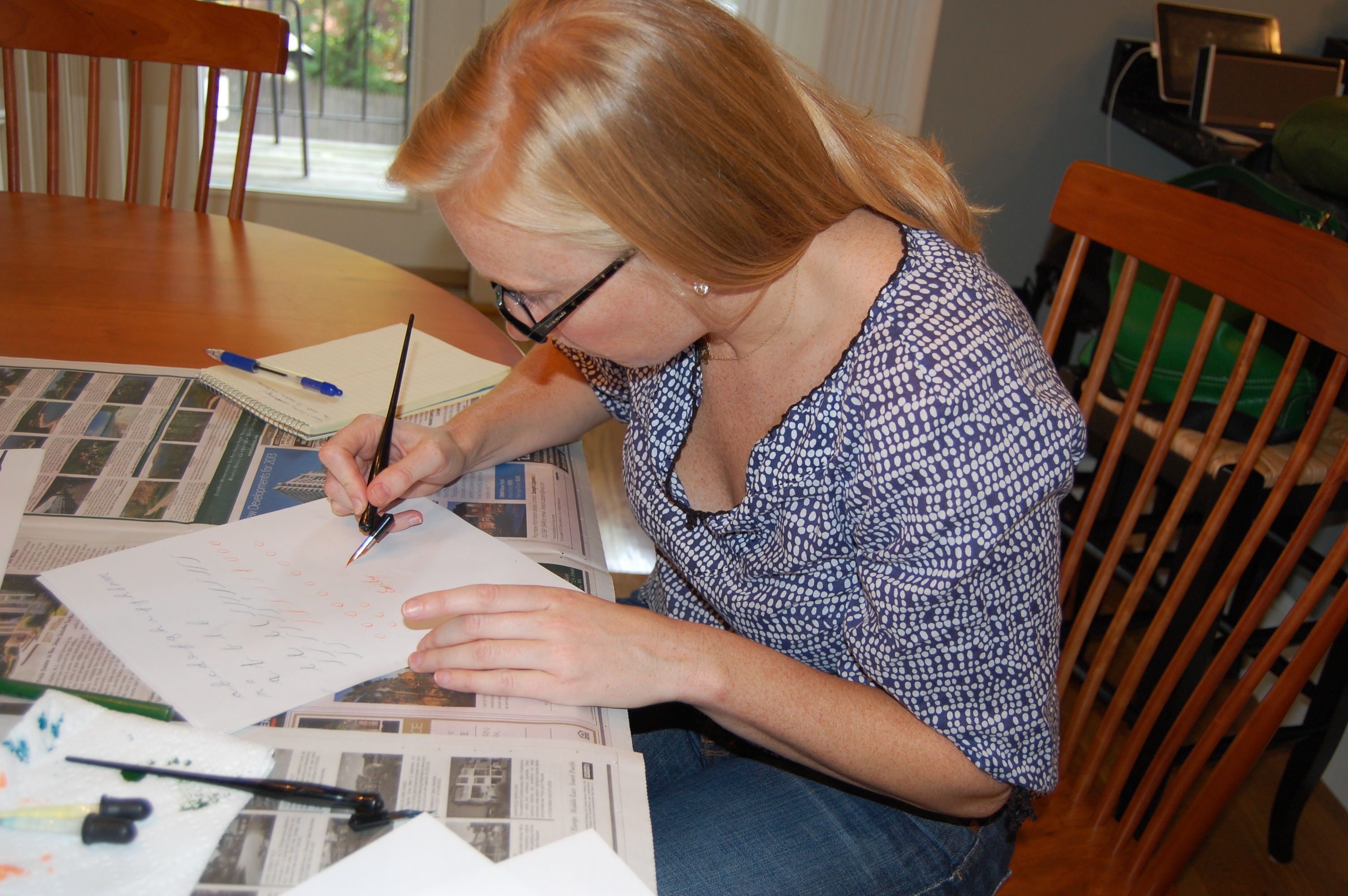 Many thanks to my friend, Mindy Barber, not only for taking the time to try to teach me the art of calligraphy, but also for creating the beautiful header at the top of this post. Her patience and good humor are always appreciated. I was not compensated in any way for this post.