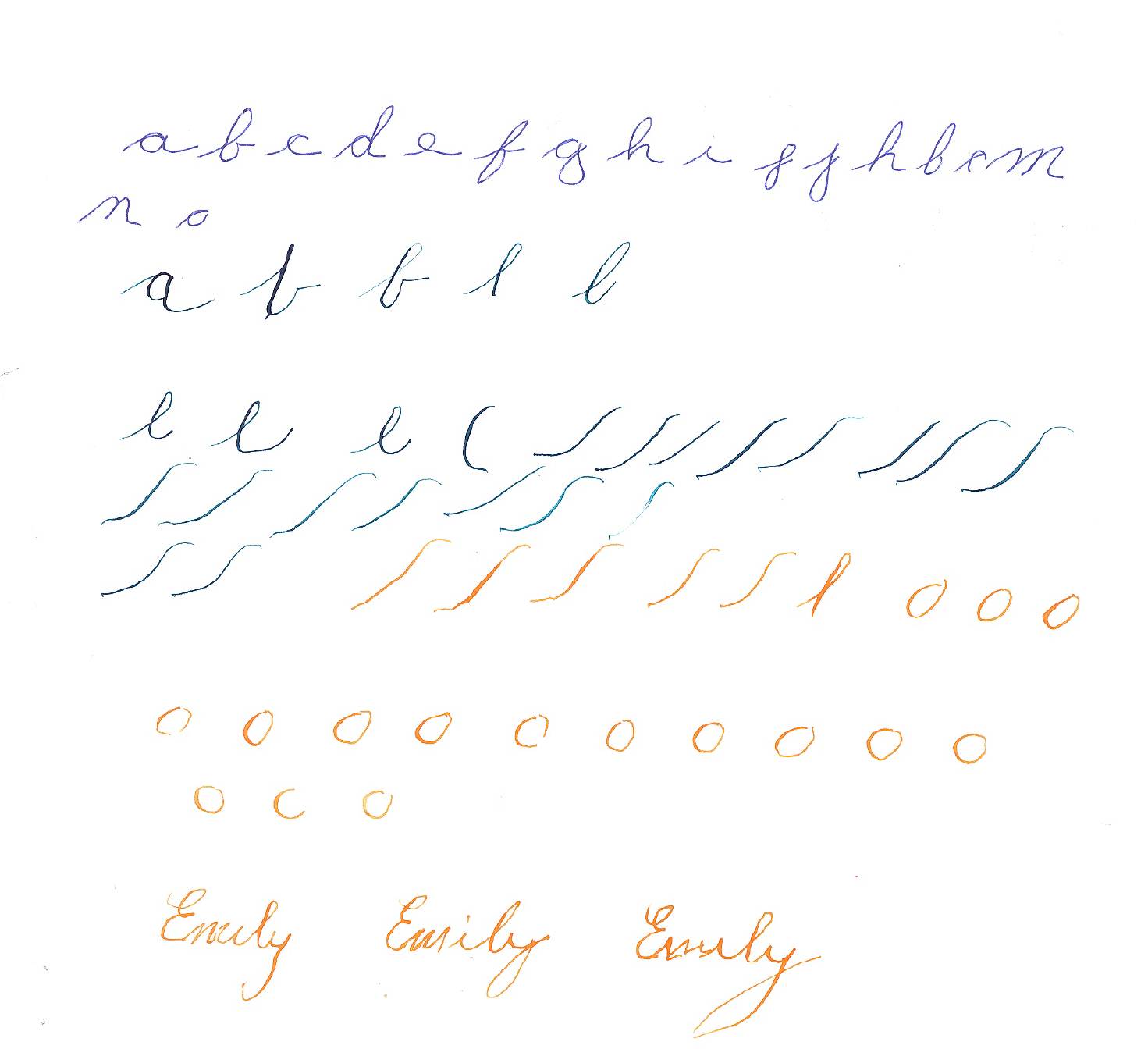 But luckily I did not succeed at all, so I didn’t have to ruminate on that for long. Proof can be found in my alphabet, doodles, wobbly circles and name below.