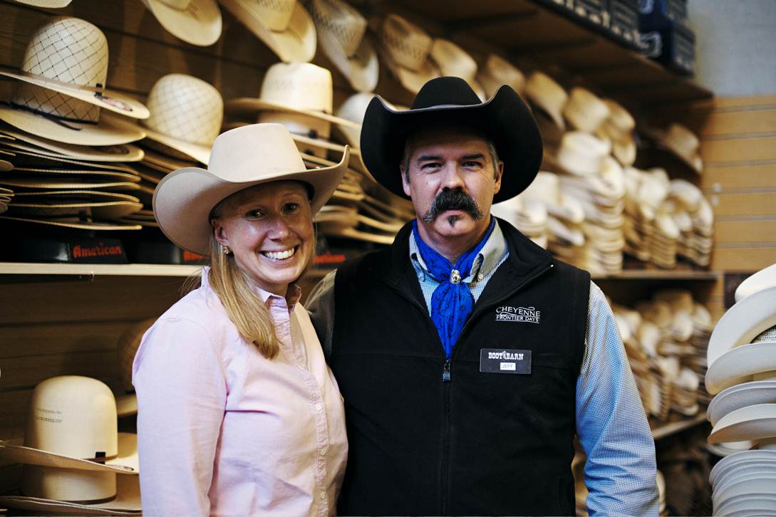 Having lived my entire life up and down (but mostly up) the east coast I thought “cowboys” only lived in Texas. Boy was I wrong. Cheyenne, Wyoming is thought of as the rodeo capital of America, and they have the event to prove it. To further demonstrate my naiveté to all things west of the Mississippi, I was also unaware that cowboy hats were shaped differently, nor did I understand that the shape of one’s hat can offer clues as to where its owner is from. Needless to say, I received quite an education when I walked into The Wrangler in downtown Cheyenne. The Wrangler is local institution, and one of the few places that still shapes hats. In addition, they sell all sorts of western ware and fashions indigenous to this part of the country. I have never seen so many cowboy boots in my life.