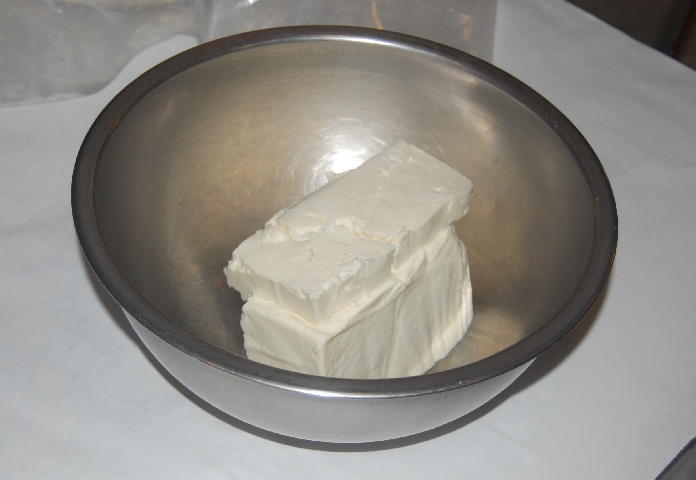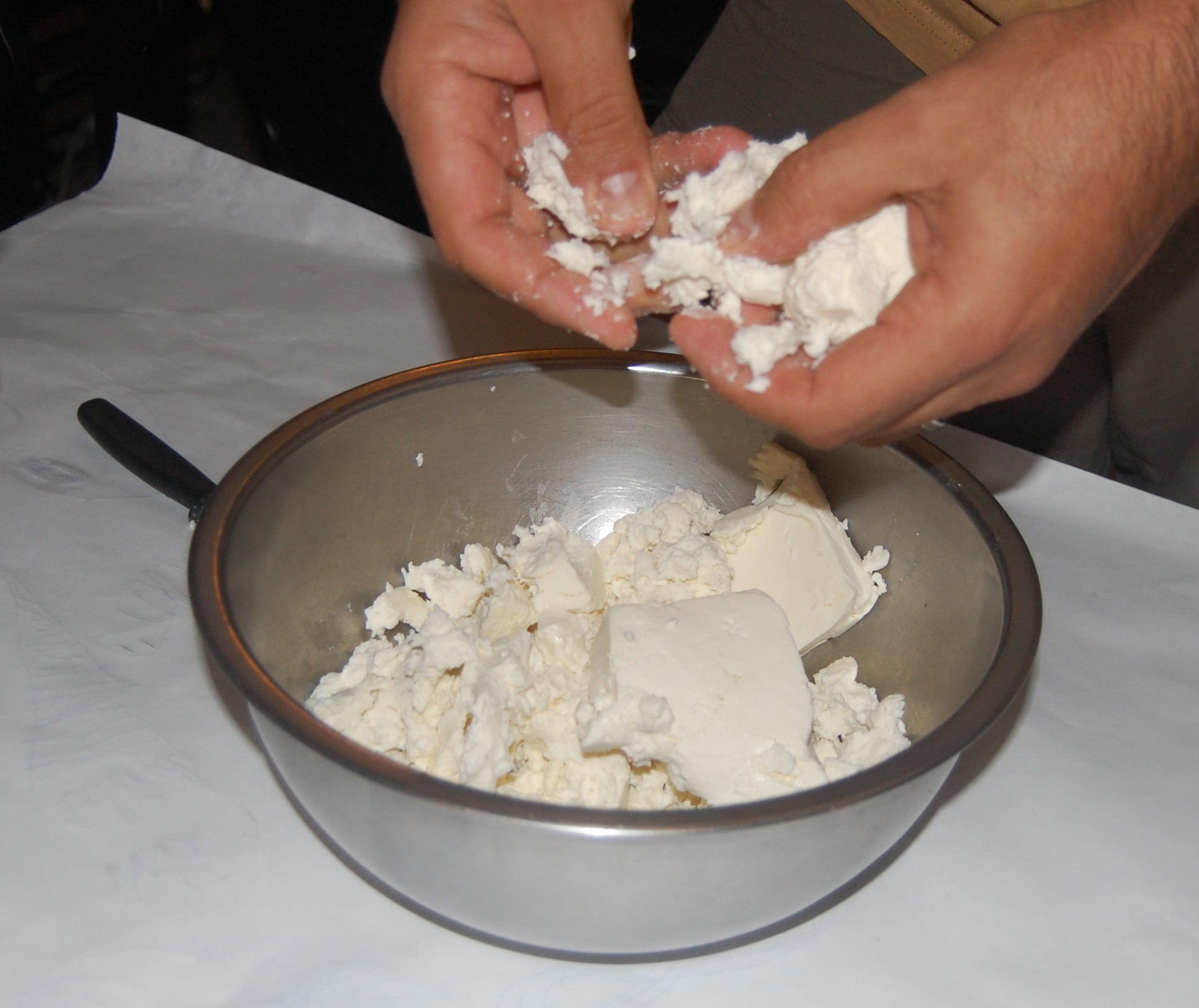 First we took mozzarella curd (which comes in large bricks), and broke it up in to small pieces.