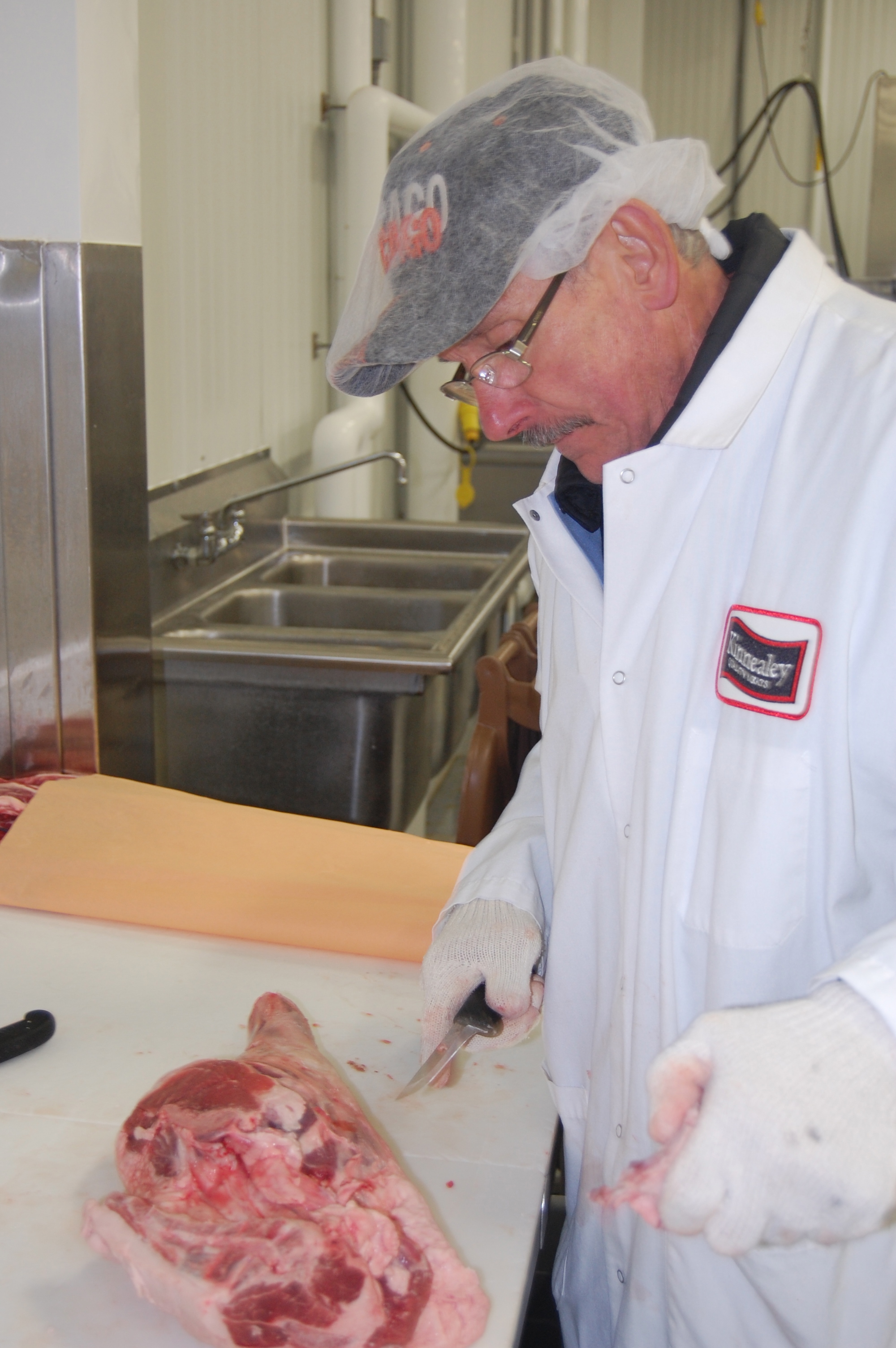 Last year I had what I consider the first day of really hard physical work in my life there. They didn’t let me off easy just because I’m family. After that post, many of you complained that it didn’t include any pictures of me sporting a hairnet. So when my cousin Joe invited me back for an introductory lesson in butchery, I jumped at the chance.
