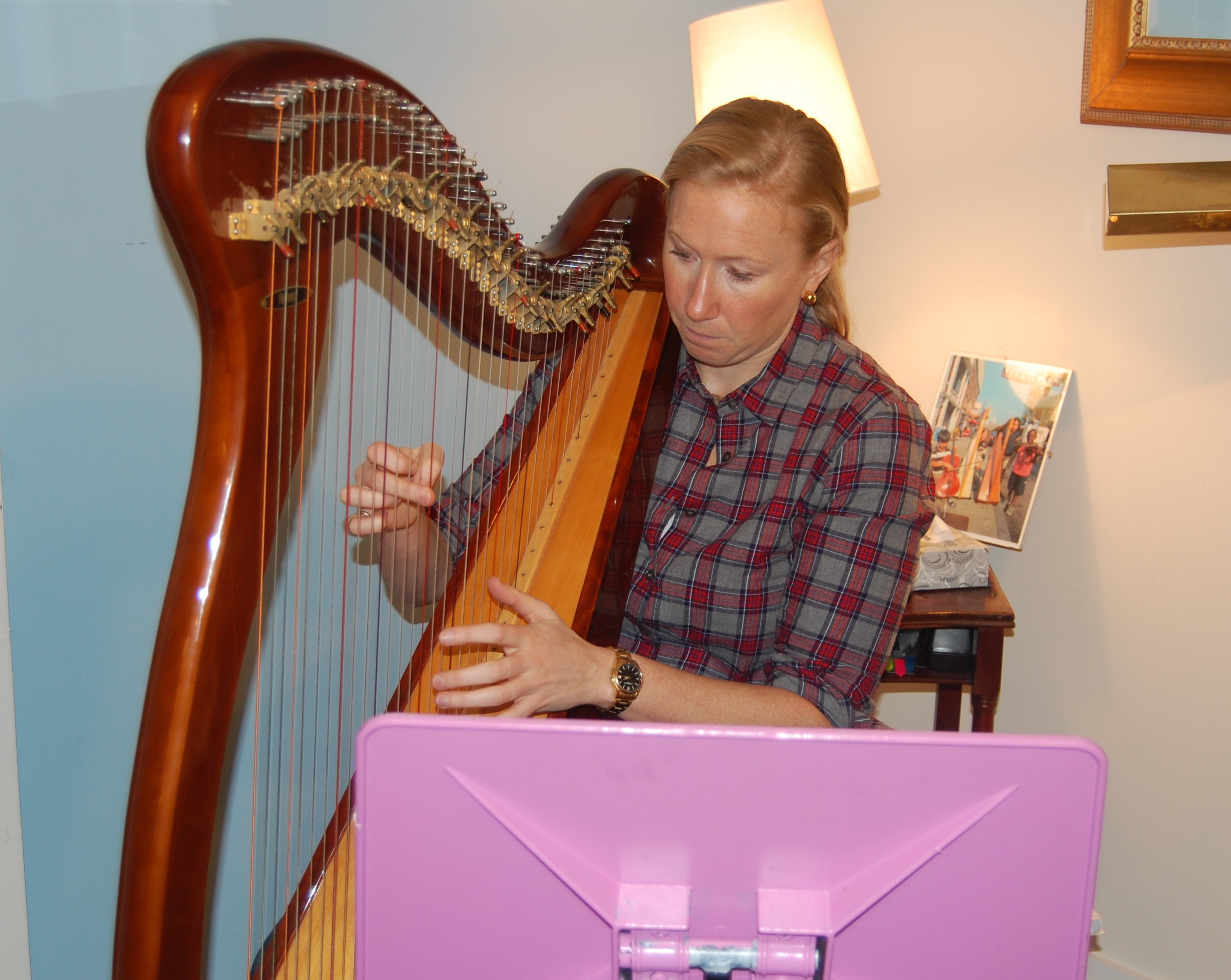 Thanks go to Amanda Romano, a talented harpist and teacher. She offers lessons to all ages, and is as god with adults as she is with children. I was not compensated in any way for this post.