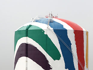 Corita Kent’s “Rainbow Swash” is a Boston institution. What you’ve never heard of it? What if I call it “The gas tank?” Ahhh, now you know what I’m talking about. This is what I set out to paint. Patrick’s preparations for this lesson illustrates his attention to detail even before his brush touches the canvas. Patrick studied the gas tank, figured out what angle he wanted and the ideal weather conditions to have as a background. He waited for that perfect weather day and then he may or may not have waded into Boston Harbor to take this image below.
