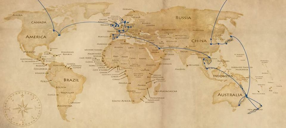 For a planner like me, that phase of the adventure would be crucial. For Joslin, the serious planning began when someone told her about the around the world airline ticket, there’s a bunch of them out there, but she quickly realized that she did not want to be constrained to travel solely in one direction (i.e. east or west). What’s the fun in a straight line when you can zigzag I say. So Joslin decided to plot her own points. And here is how it came to life: