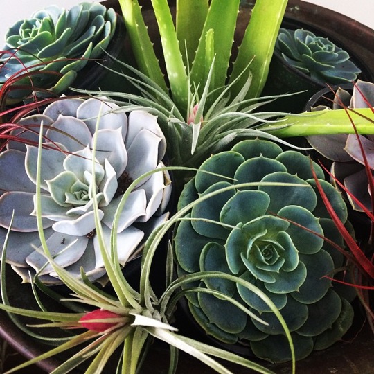 What I find amazing about her work is the balance that she finds, even when there may literally be no balance. Here’s what I mean: she finds a away to incorporate different textures (sand, rocks, shells, plastic mushrooms even), colors (a variety of greens, pinks, deep reds in some succulents) and sizes. If you saw them in any other setting you would think that they would not go together, or that you would need a pair of each to find “balance.” But Lyndsay’s creations are perfectly imperfect. It seems the elements were made to be together.